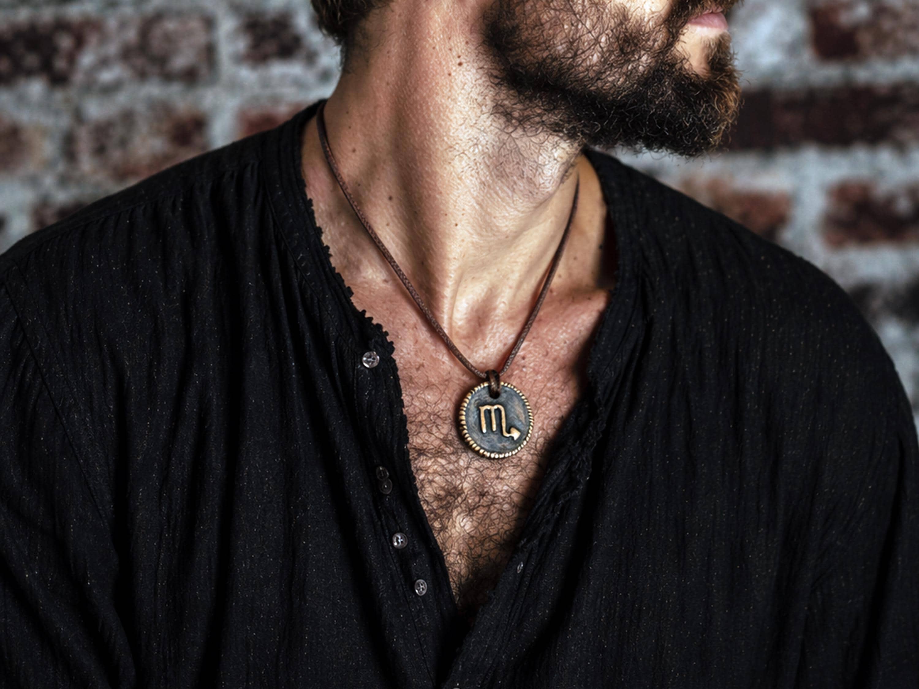 A rustic handmade Scorpio zodiac necklace for lovers of astrology, mystery, and earthy handmade jewellery.