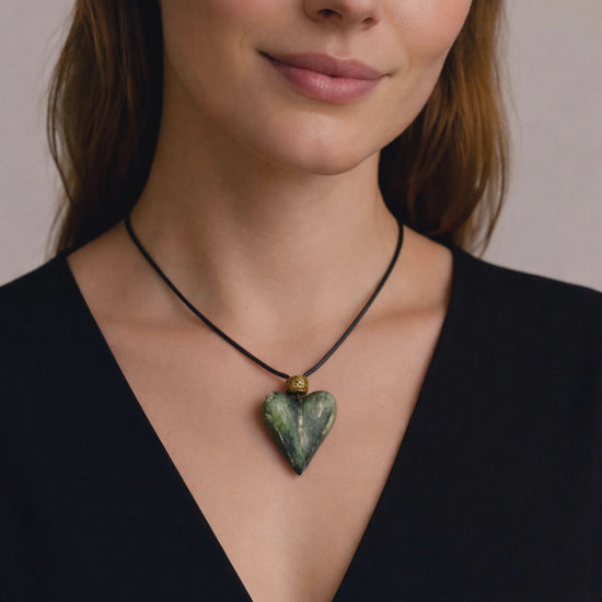 Ceramic Heart Necklace – Weathered Patina Pendant