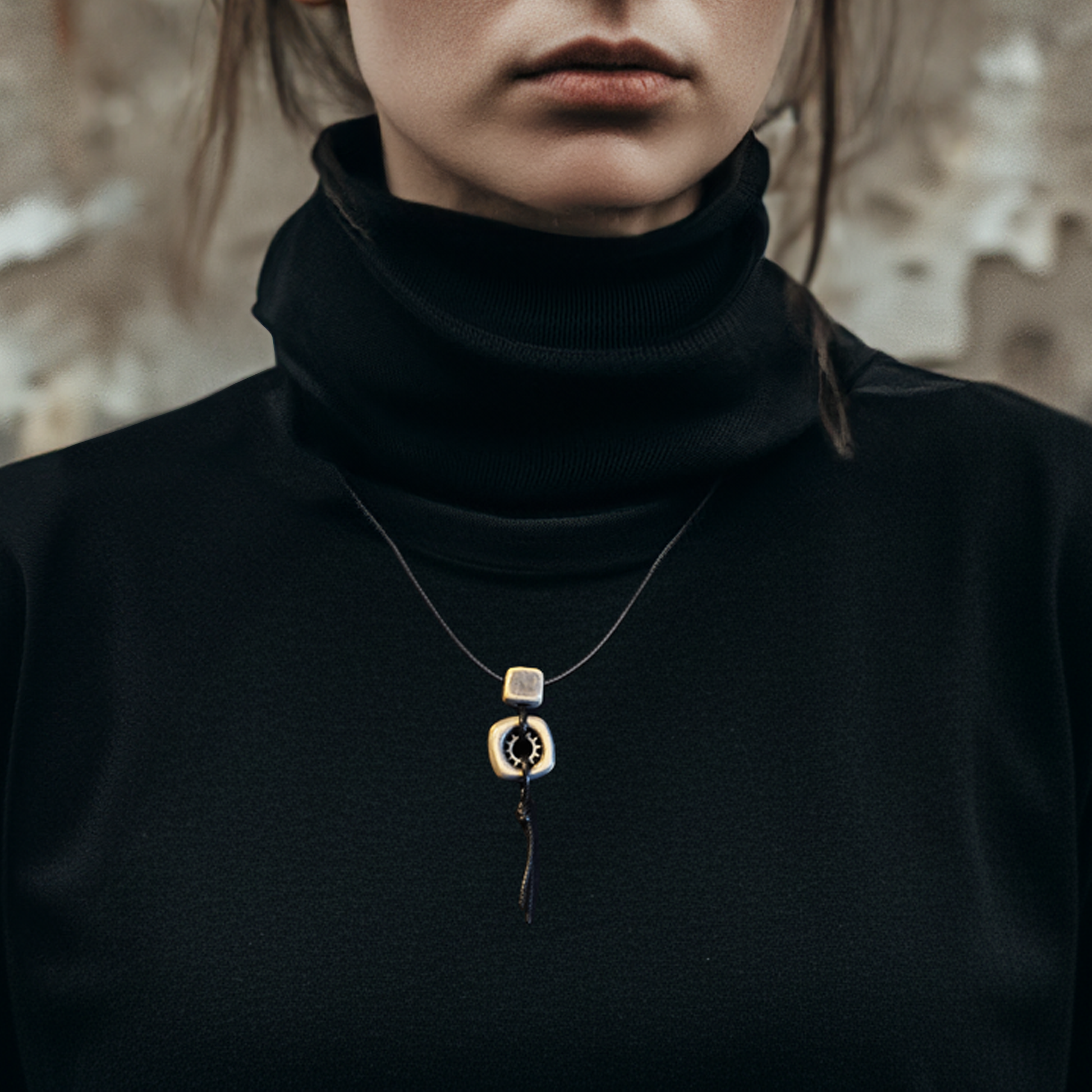 This handmade ceramic necklace mixes natural clay with a small metal detail, giving it a look that feels ancient and a little futuristic at the same time. Each pendant is shaped by hand, fired in a kiln, colored by hand, and sealed to last.